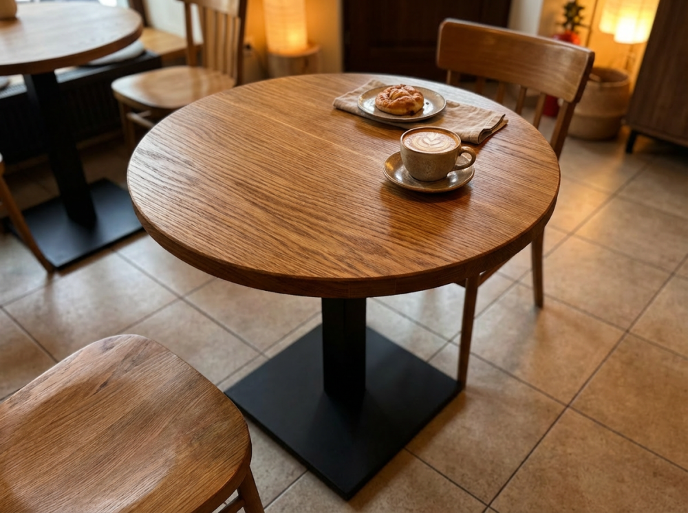 Квадратные, круглые, прямоугольные столешницы. Шпон дуба - это экологичный, устойчивый к развитию различных бактерий и микроорганизмов, гниению, образованию грибка и плесени материал.